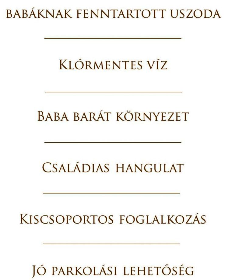 Uszodánkat kifejezetten a babaúszás számára hoztuk létre 2007-ben, hogy egy olyan helyet biztosítsunk a gyermekek számára, mely minden szempontból megfelel a babaúszásra. Gyermeked tiszta és biztonságos körülmények között élvezheti a pancsolás örömeit. A medencét csakis a babák és szüleik vehetik igénybe, így mindenki fokozottan odafigyel a higiéniára. A medencéket csakis babaúszásra használjuk, semmilyen egyéb célra nem adjuk ki (pl. zártkörű rendezvényekre, babazsúrokra). Meleg pelenkázó helyiség, járóka, szoptató sarok, női-férfi öltöző várja a szülőket, ahol akár egyedül is elboldogulnak az apróság öltöztetésével.